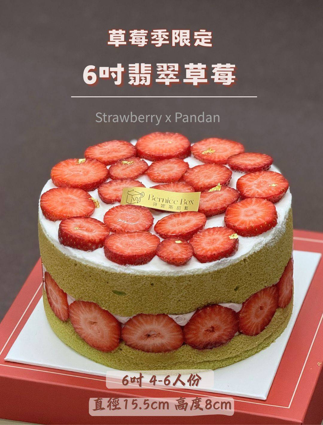 6吋翡翠草莓裸蛋糕「限自取/面交/冷藏宅配」,貝妮斯甜點